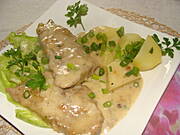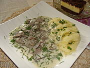Podroby cielęce w sosie śmietanowo-koperkowym.