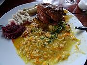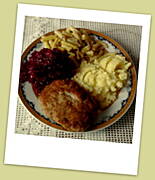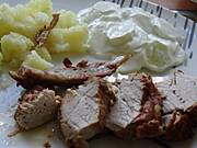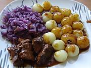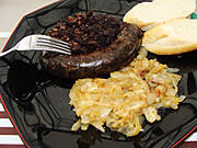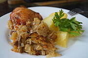 U nas karkówka w sosie, modra kapusta i ziemniaki - wciąż jeszcze skrobane.