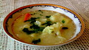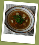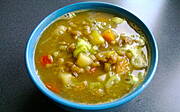 Pikantna zupa z zielonej soczewicy z curry, na drugie wczorajsza "musaka".
