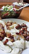 ogorkowa z ziemniakami, kluski ziemiaczane gulasz z łopatki i modra kapusta