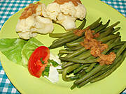 Zupa kalafiorowa z ogromną ilością koperku:) Na drugie leczo z cukinią, bakłażanem i mielonym mięsem z szynki - dla mnie z ziemniorami (wiem, dziwne, ale tak lubię), dla reszty z pieczywem.