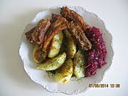 żeberka próżone - średnio pikantne, kapusta kiszona, ziemniaki, kompot z jabłek