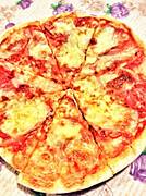 Dla Ciebie zrobie wyjatek, bierz! Pieczona na rozgrzanej odwroconej blasze z para, do zsuwania uzywam...posypanej maka podkladki pod tort. No i nie zblizam sie z walkiem do ciasta. Po pierwszym wyrastaniu dziele na 300g porcje, formuje kule, zostawiam do ponownego wyrosniecia, formuje rozciagajac, na to sos (pomidory z sola, pieprzem i bazylia, lyzka oliwy) na to dodatki i do pieca :)
