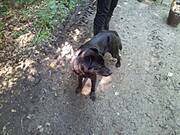 Spotkała nas tez smutna przygoda. Przybłąkał się do nas w lesie na Podkarpaciu, kilka kilometrów od zabudowań psiaczek. Był wychudzony, nieprawdopodobnie głodny, w lesie gdy usłyszał kogoś biegał od człowieka do człowieka jakby szukał właściciela. Niestety nie mógł liczyć na pomoc innych, znaleźli się nawet tacy "dobrzy" ludzie, którzy rzucali w jego kierunku kawałkami drewna. Podejrzewamy, że ktoś celowo wywiózł go tak daleko. Pies przylgnął do nas, szedł z nami kilka godzin na parking. Tam nakarmiliśmy go. Poprosiliśmy o pomoc UG we Frysztaku, którego pracownicy stanęli na wysokości zadania i przyjęli psa do klatki przy oczyszczalni ścieków we Frysztaku. Przynajmniej nie będzie głodny i będzie bezpieczny. Fajnie byłoby jednak znaleźć dla niego dobry domek. Jest to bardzo miły, grzeczny, dający się głaskać i wdzięczny pies, który z pewnością będzie przyjacielem całej rodziny.