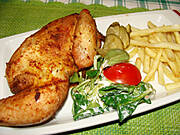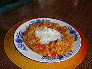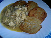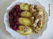 Kurczak po zbójnicku (wg Młodej) z ziemniakami.