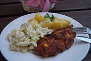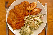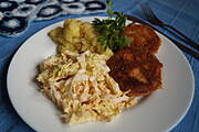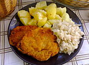 Panierowana mortadela,ziemniaki i kapusta pekińska z królewskiego stołu ...