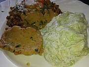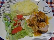 Pyszne mięsko wg joli,ziemniaki,sałata ze śmietaną.
