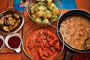 Do wyboru: gulasz wieprzowy, pulpeciki z szynki w sosie koperkowym, ziemniaki z koperkiem, ogórki kiszone, ćwikła z chrzanem.