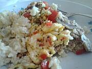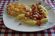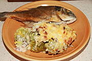 zapiekanka prawie zjedzona, mała zmiana zamiast kalafiora były podsmażone pieczarki. Wierz posypany oregano. Obiadek smakował, ser trochę zrobił się skorupką ale bardzo dobre
