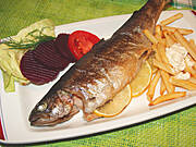 Wczoraj grzeszny obiad w KFC, ale obiado-kolacja postna - pstrąg z czosnkiem i zielskiem.