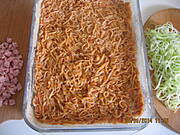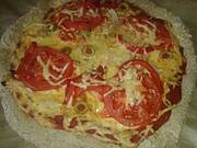 Dzisiaj zapiekanka - wykonanie jak na fotkach, - wierzch podobnie jak pizza, - tylko na dole 3 cm. makaronu siedzi - i dwie osoby to pokonały....