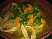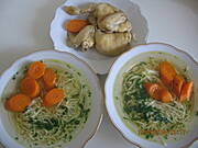 dzisiaj - ze względu na ingerencję dentystyczną - najdelikatniejszy na świecie rosołek na skrzydełkach, ja solidarnie to samo + wkładka i duuużo zieleniny.