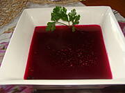 Kluski śląskie nadziewane mięsem, do popicia barszczyk czerwony. Małżonek- marchwianka z ryżem tudzież kisiel (przywlókł rota-wirusa z turnieju- full wypas)).