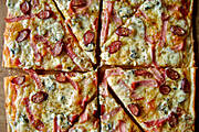 Wczorajszy rosół z makaronem na wczesny "lancz", nieco później pizza z szynką parmeńską i rukolą na mieście.