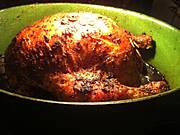 Kurcze pieczone, sos pieczeniowy, pomidory z octem balsamicznym.