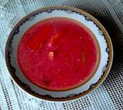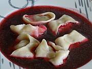 Kluski śląskie nadziewane mięsem, do popicia barszczyk czerwony. Małżonek- marchwianka z ryżem tudzież kisiel (przywlókł rota-wirusa z turnieju- full wypas)