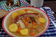 Kwaśnica ze świeżo ukiszonej kapusty z ziemniakami,białą kiełbasą i chlebem ...
