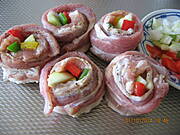 Dzisiaj " rolmopsy " z boczku w kapuście, które powstawały jak kolejno idzie na fotkach. Bardzo krótko ale bardzo mocno opeczony boczek oddał smak i kolor kapuście - a kapusta boczkowi oddała kwas - i razem było chyba dobrze....