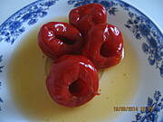 Można też inaczej: papryczki "wydrylować" i obsmażyć j.w i nadziać je serem białym z dodatkiem czosnku i ulubionych ziół ( ser biały musi być taki do krojenia nożem z małą ilością serwatki) a następnie zalać olejem i odstawić do lodówki na kilka dni.