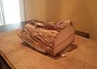 - może by tak Twój ślubny wziął solidny tasak do ręki (siekiera niewykluczona) i walnął ten kawałek na 4 ? Mniejsze kawałki wygodniej w szufladzie zamrażarki " bokami " poupychać. Około kilo to znowu nie taki ogrom ! Nie wiem jaką masz rodzinkę, ale smalczyku wcale nie byłoby tak dużo - nawet dokupiłabym trochę słoninki świeżej + cebula + jabłuszko + przyprawy - i macie smarowanko za które szynkę by się oddało.....