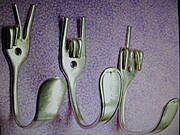 Fajne te wieszaczki. Ja używam widelca do odkręcania noża w mojej wiekowej sokowirówce od kiedy złamał się plastikowy będący w wyposażeniu. A było to baaardzo dawno temu.