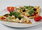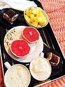 Pomidory z jogurtem i szczypiorkiem, cappuccino.
