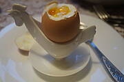 Jaja na miękko jak zawsze od szczęśliwych kur,podsmażona kiełbasa,ogórek,sos tatarski ...