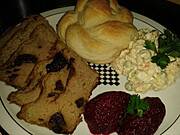 Galaretka z kurczaka z sosem chrzanowo-żurawinowym + pieczarki o Dżaniny :)),schab wg grazki,pasztet,ogórki ,sałatka gyros i chleb od Krysi :)...