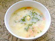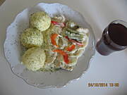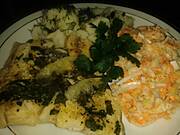 Zupa kalafiorowa z ryżem,dorsz zapiekany,surówka z kiszonej czerwonej kapusty z marchewką cebulką i jabłkiem ,ziemniaki ...