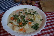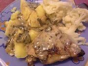 Wczoraj - kurczak duszony w sosie z opieniek, ziemniaki, kalafior "saute"