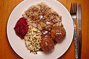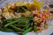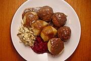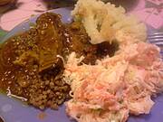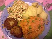 A potem: malutkie mieloniutkie, ziemniaki, marchewka z groszkiem i surówka z brukselki (pomysł by Sunniva). To, oczywiście, wczoraj.