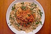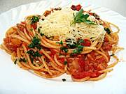 Wczoraj - spaghetti z brokułem i suszonymi pomidorami.