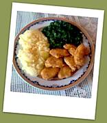 Nuggetsy z kurczaka,ziemniaki,szpinak.