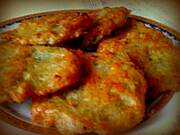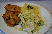 Placuszki z kurczaka i surówka z pekinki, rzodkiewek, ogórka itp z sosem czosnkowym.