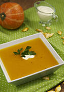 Kremowa zupa kalafiorowa, tarta dyniowo-cebulowa.