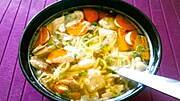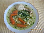 Rosół z trzech rodzajów drobiu z makaronem,filet z kurczaka na porach,surówka z marchewki,pora i jabłka,fasolka szparagowa i ziemniaki ..