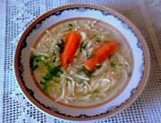 Rosołek z makaronem,gulasz z wołowiny, ziemniaki,surówka z kiszonej kapusty.