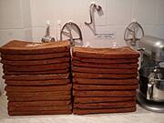 Moje pierniki dziś upieczone. Z dwóch porcji. Podzielone na 8 części, z 6 zrobione blaty, z dwóch pierniczki, których już połowy nie ma. Jedna blaszka nadziewanych - jedna, bo mi się przypomniało na sam koniec o tym nadziewaniu, i już ich nie ma. W przyszłym roku będzie więcej nadziewanych. Tylko chyba będę musiała z 3 porcji piernik robić.