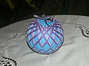Najbardziej pracochłonne jest przygotowanie kuli pod haft.Tutaj nie widać siatki na której się haftuje, no i całej sieci szpilek :). Samo haftowanie idzie szybko.