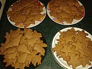 U mnie tez proba piernikaowa, test ciasta na domek z piernika, ciasto za miekkie, nie nadajevsie, szukam dalej. Mam teraz ciasta na pierniki z 4 kg maki, 3 rodzaje, w lodowce. Klara zrobila kilka grubszych sztuk pierniczkow, ja upieklam jeden blat, ktory przekroilam na 3 paski, przelozylam powidlami i masa grysikowa, z kubkiem goracej czekolady z rozpuszczonymi piankami, to podobno najlepsze sniadanie od wczoraj ;) zrobilam tez dwie blaszki malych pierniczkow, ktore posmarowalam kykrem gotowanym, opakowalam swiatecznie i pojda z nami na obiad do przyjaciol. Tak, szerze mode na pierniki. ;)