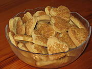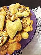 Z pozostalego ciasta na paszteciki ciasteczka z krokantem orzechowym ( bo kupilam i nazbieralam za duzo orzechow), cukrem i cynamonem, gdyz Rysiak obawia sie witami w orzechach. ;)