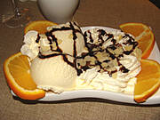 Wczoraj upieczona szarlotka sypana z lodami śmietankowymi lub bitą śmietaną, kto z czym sobie życzył.