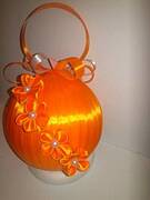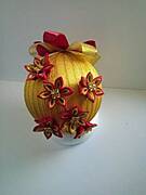 Kwiaty zrobione są z wstążki satynowej 38mm jest to metoda tworzenia kanzashi. Na internecie jest wiele filmików jak wykonać takie kwiaty gdy wpisze pani kwiaty robione metodą kanzashi wyświetli się wiele wyników ja najwięcej nauczyłam się przy filmikach pani Anastasiya Kuligovej. Te ostatnie kwiaty to śnieżynki. Pozdrawiam(te, które zobią bombki, i te z dwóch ostatnich zdjęć)