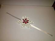 Kwiaty zrobione są z wstążki satynowej 38mm jest to metoda tworzenia kanzashi. Na internecie jest wiele filmików jak wykonać takie kwiaty gdy wpisze pani kwiaty robione metodą kanzashi wyświetli się wiele wyników ja najwięcej nauczyłam się przy filmikach pani Anastasiya Kuligovej. Te ostatnie kwiaty to śnieżynki. Pozdrawiam
