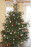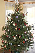 U mnie najładniejszą i jedyną tego roku ozdobą jest choinka :)) Udało się za niewiele kasy kupić piękniastego, rozłożystego świerka, więc ograniczyliśmy ilość ozdób i zrezygnowaliśmy z girland :))