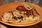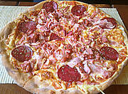A gdzie rzeźnik ? , widzę 7 plastrów salami, boczuś , bekon czy szynka, wióry sera żółtego ale brak jakoś owego gościa w nazwie pizzy wymienionego .