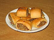 Paszteciki. Wszystko przez bajke o zakochanym kundlu. Zachcialo mi sie zrobic makaron z klopsikami w sosie pomidorowym, kupilam troche za duzo miesa, bylo troche kapusty bezpanskiej w lodowce drozdze i moj odtluszczony jogurt... Po zrobieniu pasztecikow zostalo troche ciasta, wiec zrobilam ciasteczka, ktore sa w watku deserowym. :)