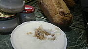 Masą orzechową ...niebezpiecznie pyszną . Taką mieszankę już gotowa kupiłam , orzechy różnej faktury i cukier, wystarczy tylko parę łyżek mleka lub śmietany . Suuper nadzienie do rogalików , strucli czy bułeczek. ))