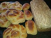 Chleb pszenny na zakwasie żytnim z siemieniem lnianym oraz bułki pszenno - kukurydziane :)