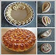 Układać na okrągłej formie w kształcie koła wyłożonej pergaminem.